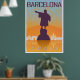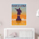 Poster vintage de Barcelone en orange et bleu texturé arrière - plan avec skyiline en blanc
