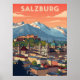Découvrez la beauté de Salzbourg avec cette carte postale de style vintage qui comprend l'emblématique forteresse Hohensalzburg, l'architecture charmante de la vieille ville et les Alpes enneigées au coucher du soleil - un endroit idéal pour les voyageurs, les collectionneurs et les amateurs d'art urbain européen.