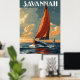 Embarquez pour un voyage dans le temps avec cette affiche de voyage vintage de Savannah, Géorgie. Cette affiche présente un majestueux voilier planant sur des eaux tranquilles, rappelant une époque révolue.