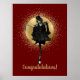 Une façon amusante d'envoyer des félicitations à ceux qui sont proches et lointains. Design propose découpe photo vintage de femme en robe et chapeau de dessus dansant sur le dessus de bouteille de champagne avec disque or orné sur rouge foncé / marron arrière - plan et or texte personnalisable.