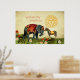 This vintage Valentine of two animals in love would the heart of any lover ! This design objets a collage of vintage illustrations of an elephant and a zebra in the circus, standing on grassy hill surrounded by daisies and poppies. The elephant is holding a daisy in his trunk, offering it to the zebra. A beautiful sun shines down on the couple. "You are my sunshine" completes the Valentine. The circus animals are wearing colorful satin blankets and there are some floral swirls in the background of the collage. This beautiful altered vintage art will definitely make impression on your loved one .