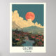 Entrez dans la ville historique de Globe, Arizona avec ce poster vintage humoristique et atmosphérique. Le design de la ville nichée dans une vallée sous une lune surdimensionnée et spectaculaire, met en valeur son riche patrimoine minier et sa situation unique. Cette oeuvre est parfaite pour ceux qui apprécient l'histoire de l'Arizona, les nuits du désert et le caractère distinctif de ses petites villes.