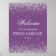 Bannière de bienvenue mariage / signe avec élégante parties scintillant en argent brillant sur un arrière - plan violet.