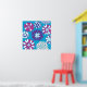 Fleur violet rose blanc Art sur Turquoise bleu "rose et violet" "fleurs roses" "fleurs violettes" "fleurs violettes rose sur bleu" "turquoise bleu arrière - plan" "imprimé d'art floral" "fleur" "joli" "girly" "joli motifs" "cadeaux pour elle" "fun" "coloré" "tendance" "pétales de fleurs" "silhouettes de fleurs"