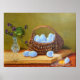 Ajoutez un peu de couleur à vos murs avec les Violets et le Panier d'Oeufs d'Abuela Raquel. C'était la vie encore la plus difficile peinte par Raquel — avec les textures variées du panier et du bois, ainsi que la fluidité de l'oeuf. Les fleurs du côté gauche sont des violets - l'une de ses fleurs préférées - qu'elle avait cueillis dans son jardin. Raquel a traversé six oeufs pour faire ce tableau, parce qu'elle voulait qu'il ait un look très réaliste. Le bois est sorti si bien par erreur... elle essayait d'effacer son travail initial sur la planche à découper, et le résultat semblait encore meilleur. Parfois, ce qui semble être une erreur peut conduire à quelque chose de mieux !