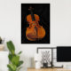 Cette affiche présente une vie morte classique d'un vieux violon élégant. Cet instrument gracieux est essentiellement une boîte en bois creux aux extrémités arrondies, deux trous gracieux et un centre étroit. Les quatre ensembles de cordes s'étendent d'un porte-cordes au bas du corps sur un pont surélevé jusqu'à l'extrémité du cou étroit, ou du panneau où les quatre cordes sont insérées dans une boîte à aiguilles et y sont maintenues avec des chevilles. Les piquets sont utilisés pour régler le violon. Lorsque l'arc est tiré à travers les cordes sur le corps du violon, il produit une musique incroyable, magique! Les magnifiques tons marron doré, presque orangés, se marient avec le gracieux velours noir.