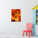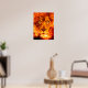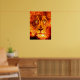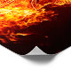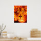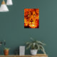 Art numérique d'un visage de lion flamboyant aux yeux jaunes percevants. L'image utilise des rouges, des oranges et des bruns pour créer une sensation de chaleur intense et de concentration déterminée. Poster Du Visage Du Lion Flaming.