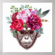 Ce design présente un joli portrait d'un singe orné de fleurs colorées.