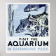 Poster faisant la promotion de l'aquarium à Fairmount Park comme un endroit à visiter, montrant des poissons.