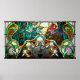 Il dispose d'un design de vitraux fleuris Art nouveau. Dans les couleurs de l'or, vert bleu et rose. Il présente des iris blancs et des fleurs violettes.