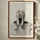 Cette oeuvre remarquable, intitulée "Voile du Silence", mêle habilement surréalisme et hyperréalisme, mettant en valeur une figure dont le visage est obscurci par les mains, symbolisant un profond sens de l'introspection et de la tourmente émotionnelle. La palette monochromatique améliore le contraste frappant entre les textures lisses de la peau et la surface rugueuse et fissurée en dessous, représentant la fragilité de l'émotion humaine. L'utilisation de l'espace négatif attire l'attention du spectateur sur la figure centrale, évoquant des sentiments d'isolement et de contemplation. L'attention méticuleuse de l'artiste aux détails crée un récit visuel d'une beauté effroyable qui invitation les spectateurs à explorer les thèmes de vulnérabilité et de perception de soi.