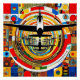 L'I.A. a créé une interprétation surréaliste d'un paysage abstrait surréaliste futuriste, avec des structures imposantes avec soucoupes volantes et des avions en vol naviguant entre eux.
