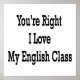 Amusez-vous avec notre design You're Right I Love My English Class.