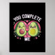 Montrez votre amour avec un soupçon d'humour et un parfum de douceur ! "You Complete Me" présente deux moitiés d'avocat adorables, l'une avec une graine et l'autre sans, souriant joyeusement ensemble. Entouré de coeurs et de détails ludiques, ce design est idéal pour les amateurs d'avocats, les couples ou toute personne qui aime répandre l'amour et la positivité. Que vous fêtiez la Saint-Valentin, un anniversaire ou que vous vouliez juste faire sourire quelqu'un de spécial, ce design est la façon parfaite de dire "Vous me complétez." Un délicieux cadeau pour les gourmands, amateurs de jeux de mots ou qui ne résiste pas au charme des avocats !