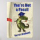 Vous obtenez votre diplôme ou connaissez-vous un diplômé ? Nous avons une carte humoristique parfaite pour l'occasion, Vous n'êtes pas un fossile ! Vous êtes un diplômé. Notre design présente une illustration mignonne d'un dinosaure T-Rex vert portant une casquette de remise des diplômes bleue et tenant un parchemin de diplôme dans sa bouche sur un fond jaune parchemin avec notre texture signature et encadré à gauche d'un parchemin avec un ruban rouge. Offrez à cette personne spéciale une carte qui chatouillera son funny bone.