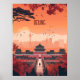 Cette affiche présente une illustration sereine et chaleureuse représentant le paysage urbain de Pékin avec un vieux temple et des tours de ville. C'est un grand poster pour les amoureux de l'orient.