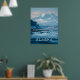 Capturez la beauté de la Dernière Frontière avec cette affiche de voyage moderne en Alaska. Présentant un design audacieux avec des baleines et un paquebot de croisière, cette oeuvre apporte une touche nouvelle aux imprimés de voyage classiques. Parfait pour ajouter une touche aventurière inspirée de la flânerie à votre mur de maison, de bureau ou de galerie.