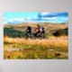 Une aquarelle a de trois hommes VTT dans les collines galloises.