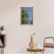 Poster qui ressemble à une fenêtre — Arbre de printemps Profitez des premiers feuilles verts frais du printemps en regardant par votre affiche de fenêtre sur cet arbre contre un ciel bleu d'avril. Il est encadré par une fenêtre en bois et donne l'effet d'une chambre avec vue où que vous viviez. C'est une scène si relaxante à avoir sur votre mur.