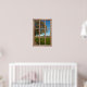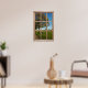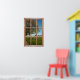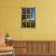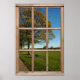 Regardez une scène de parc d'automne à partir d'une affiche "fausse fenêtre". La fenêtre en bois donne sur un beau chêne et l'herbe verte d'un parc. Un banc de parc peint offre une place de repos parmi les feuilles déchus. Le ciel au-dessus est bleu avec à peine un nuage. Cette image qui ressemble à une fenêtre peut vous donner votre propre vue de parc en créant un effet de fausse fenêtre sur votre mur. Une scène de calme pour une chambre.