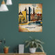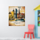 Un art contemporain sur les murs à poster de la ville de Copenhague, qui présente des bâtiments historiques colorés, des flèches emblématiques et un charme au bord de l'eau dans un style artistique moderne.