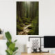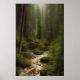 Belle affiche d'art numérique photoréaliste d'un ruisseau traversant une forêt luxuriante. Image créée à l'aide du logiciel AI