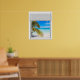 Plage et mer tropicale bleue, fausse scène de fenêtre, pour une salle de bain sans fenêtre ou mur de bureau. Illusion d'optique réaliste et amusante affiche pittoresque pour un bureau ou un mur d'étude.