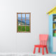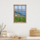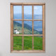 Poster qui ressemble à une fenêtre — vallée de montagne Ce cadre de fenêtre en bois crée un faux effet de fenêtre pour votre mur. Créez votre propre vue imprenable sur la montagne sans déménager ! Par la fenêtre, on aperçoit l'herbe verte et fleurie d'une colline alpine avec une petite église blanche. Au-delà, la vallée loin en bas et une chaîne de montagnes au loin. Cette image a été prise dans la région de Tirol dans les Alpes autrichiennes.