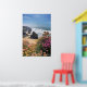 Poster Vue sur la falaise de la plage avec des fleurs,