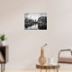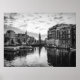 Cette affiche en noir et blanc capture une vue intemporelle d'Amsterdam avec son canal historique, son architecture hollandaise charmante et sa tour emblématique de l'horloge qui s'élève au loin. Le reflet des bâtiments et des bateaux sur l'eau calme crée un sentiment de profondeur et de tranquillité, tandis que le ciel dramatique ajoute de l'atmosphère à la scène. Parfait pour tous ceux qui aiment voyager, les villes européennes ou la photographie d'art, cet art mural s'ajoute à un salon, un bureau ou une étude. Apportez la beauté et le caractère d'Amsterdam dans votre maison avec cette impression de paysage urbain classique.