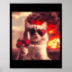 Poster Wacky Cat Holding Wine Selfi With Fire Funny Sungl