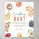 This cute "baby brunch" girl baby shower pacifier hunt poster features a cream background with brunch foods such as waffles, coffee, croissant, avocado, orange, bananas, egg, blueberries, and strawberry . The reverse side features a white background with gingham check pattern in orange. Personalize it for your needs. You can find matching products at my store.
