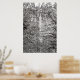 Illustration en noir et blanc de l'eau qui s'écoule du haut d'un bassin de basalte et dans une forêt remplie d'arbres. Copyright ©2019 Kimberly J Tilley www.zazzle.com/kimberlyjt