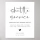 Wedding Shuttle Service Sign: clearly display the shuttle pick-up time with this sign, so guests know exactly when to be ready for transportation. Perfect for reducing confusion and keeping your event on schedule. Customizable colors.
