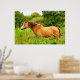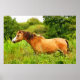 Un mignon poney de montagne souillé broutant dans une prairie estivale. Aquarelle. Pays de Galles.