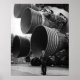 Dr Werner von Braun, pionnier du programme spatial américain, debout près des moteurs de la fusée d'essai Saturn V, Huntsville Alabama. Conçu et développé par Rocketdyne sous la direction du Marshall Space Flight Center, un groupe de cinq moteurs F-1 a été monté sur la Saturn V S-IC (première) étape. Les moteurs mesuraient 19 pieds de haut par 12,5 pieds à la sortie de la buse et brûlaient 15 tonnes d'oxygène liquide et de kérosène chaque seconde pour produire 7 500 000 livres de poussée. La phase S-IC est la première étape, ou l'appoint, d'une fusée de 364 pieds de long qui a finalement emmené des astronautes sur la Lune. Photo NASA.