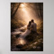 This romantic fine art print captures a quiet moment of love shared beside a forest stream at dawn. Surrounded by moss, flowing water, and soft golden light filtering through the trees, the couple sits in peaceful harmony, unhurried, grounded, and deeply connected.