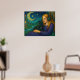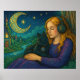 Poster Whimsical Girl with Black Cat Under Crescent Moon