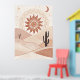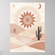 Plongez dans la beauté sereine du désert avec ce chef-d'oeuvre minimaliste Boho Chic. Doté de dunes de sable ondulées, d'un soleil rayonnant inspiré du mandala et d'un cactus saguaro emblématique, le tout enveloppé de tons chauds et terreux pour une esthétique tranquille et élégante.