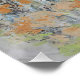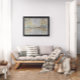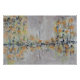 Impressionistic trees line a calm body of water, their reflections creating a mirrored effect. Soft autumn hues of orange and green are set against a muted background, emphasizing a serene and tranquil environment.