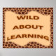 Cette affiche affiche une girafe design avec le texte "Wild About Learning" au milieu de l'affiche. C'est un grand ajout à une salle de classe à thème de jungle.