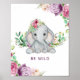 Aquarelle illustration d'un adorable petit éléphant. De belles fleurs roses entourent cette créature d'animal super sauvage. Idéal pour les Baby showers et les anniversaires d'enfants.