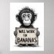 Poster Will Work for Bananas - Humorous Monkey Sketch