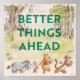 Ce doux graphique représente Winnie l'ourson et ses amis avec la citation inspirante "De meilleures choses à venir."