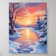 Poster Winter River Sunset Landscape Snow Watercolor