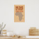 Note: This is a fair trade message but not necessarily a fair trade product! Text reads: Fair trade. Help Africa acquire economic self-sufficiency. Food aid dependency is not a solution. Beautiful combination of brown and orange tones with Africa map.