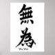Pôster de parede com uma imagem de holograma japonês com a palavra Wu Wei, que significa estar sereno, sem preocupações, deixar fluir e aceitar.