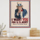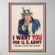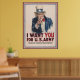 L'affiche de guerre avec la célèbre phrase "Je veux que vous soyez pour l'armée américaine" montre l'oncle Sam pointant son doigt vers le spectateur afin de recruter des soldats pour l'armée américaine pendant la Première Guerre mondiale. L'expression imprimée "poste de recrutement le plus proche" contient un espace vide ci-dessous pour ajouter l'adresse pour s'enrôler.
