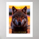 Poster shown with a photo print of a wild wolf in the water in Yellowstone National Park, USA.