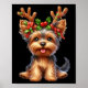 Poster Yorkshire Terrier Reindeer Santa Hat Noël Lumières